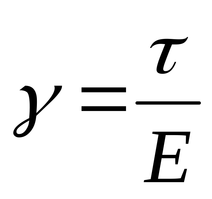 Закон Гука показує, що величина деформації пружного тіла пропорційна величині діючих напружень і обернено пропорційна модулю пружності тіла. В координатах γ – τ закон Гука представляє собою рівняння прямої, яка проходить через початок координат з кутовим коефіцієнтом 1/E (рис. 3.4.).