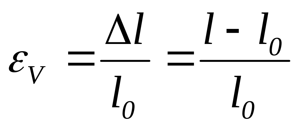 Деформація розтягу характеризується величиною відносного розтягу, εV: