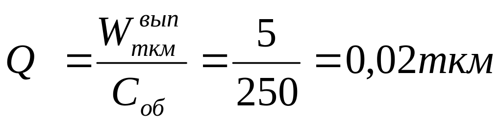 Пример. Авиатранспортное предприятие выполнило за год объем работ в 5 млн. ткм, получило доход в сумме 2 млрд. руб., среднегодовая сумма оборотных средств составляет 250 млн. руб. Необходимо определить