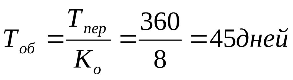 где Т — продолжительность исследуемого периода в днях (в расчетах принято считать месяц равным 30 дням, квартал — 90 дням, а год — 360 дням);