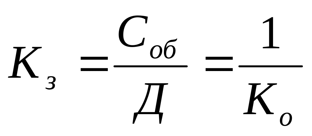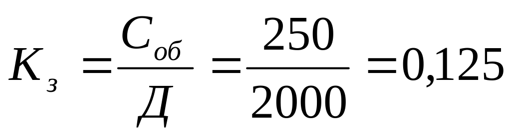 - Коэффициент закрепления оборотных средств представляет собой сумму оборотных средств авиапредприятий, приходящуюся на 1 руб. реализуемой продукции, определяемой через сумму доходов:
