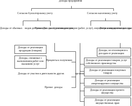 Доходы предприятия следует рассматривать с позиций бухгалтерского и налогового учета (табл. 6.1, рис. 6.1).