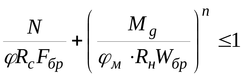 где Мg =М/, а показатель степени п = 2 как для элементов без закрепления растянутой зоны из плоскости деформирования;
