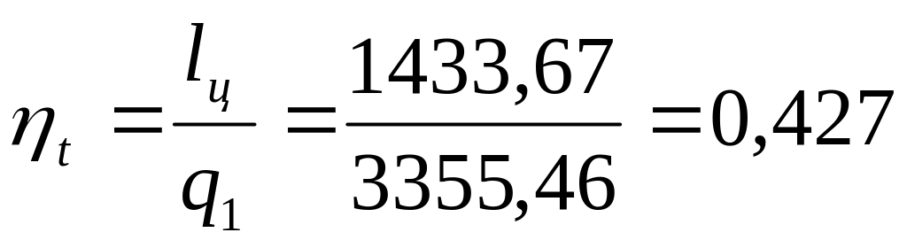lц=q1-q2 =3355,46-1921,79 =1433,67кДж/кг