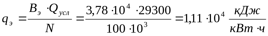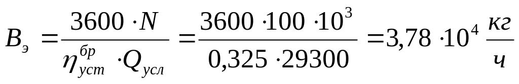 Теплота сгорания топлива Qусл=29300 кДж/кг