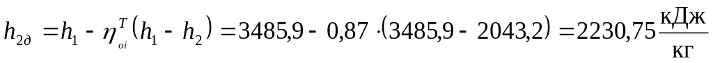 lT=h1-h2=3485,9-2043,2= 1442,7кДж/кг lН=h3-h2’=130,44-121,41=9,03 кДж/кг