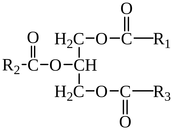 Глицерин как трехатомный спирт может образовывать сложные эфиры с участием всех или 1–2 гидроксильных групп. Жиры являются, как правило, полными эфирами глицерина, включающие остатки одной или нескольких кислот: