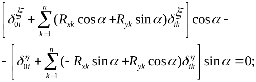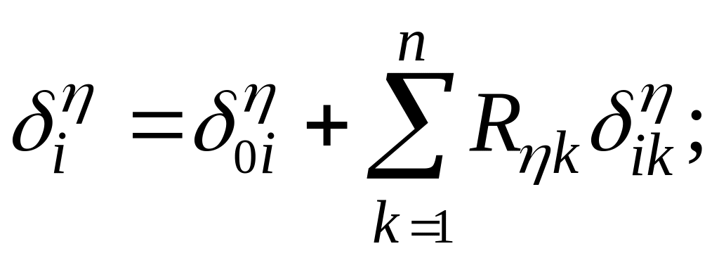 Под действием этих, пока еще не известных, сил i'-я точка руля и i-я точка стабилизатора должны совместиться. Если предположить, что эти перемещения происходят лишь в плоскости сечения, то для каждой из n точек можно записать по два условия: