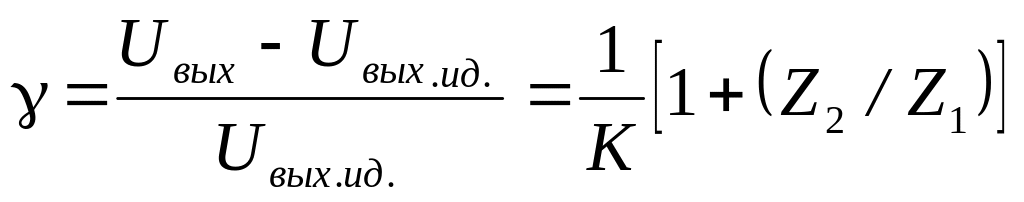 При работе ОУ в ЦИП емкостного входного преобразователя, имеющего малые значения емкостей в пределах 1...100 пФ, частоту источника сигнала выбирают в пределах 1 - 100 кГц. На этой частоте при f1= 1 мГц ОУ имеют коэффициент передачи K=102 – 103. Возникающая при этом погрешность, связанная с не идеальностью ОУ, имеет ощутимую величину и может быть определена как разность выходного сигнала идеального усилителя на ОУ и усилителя, работающего на данной частоте, отнесенная к выходному сигналу идеального ОУ (при Kf ).