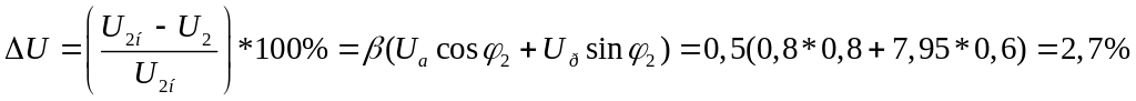 Активно-индуктивная нагрузка трансформатора приводит к снижению напряжения на его вторичной обмотке U2, которое можно найти из формулы процентного изменения напряжения: