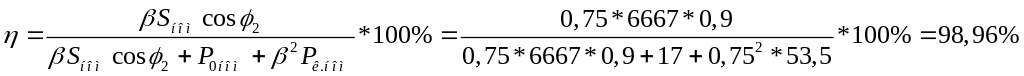 где: Р0 – мощность потерь при холостом ходе, равная сумме потерь в стали на гистерезис и вихревые токи; Рк – мощность потерь в обмотках при коротком замыкании (при нагрузке, отличной от номинальной, мощность потерь в обмотках Pβ = β2 Pк.
