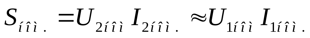 Номинальные токи первичной и вторичной обмоток определяются из формулы номинальной мощности трансформатора:
