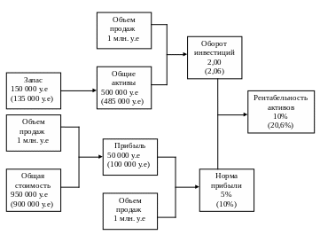 Задание 1.1 Используя эффект увеличения доходности активов рассчитать как изменится величина средств отвлеченная в запасы и рентабельность активов при снижении стоимости закупок на 12%, если величина запаса составляет 30% от объема общих активов; общие активы составляют 600 тыс. у.е; объем продаж – 1300 тыс. у.е; общая стоимость – 85% от объема продаж.
