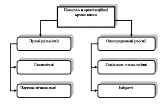 Останні дві групи показників впливають на економічну ефективність організації опосередковано, характеризуючи водночас результат прояву організаційної креативності і умови для підвищення її творчого та інтелектуального потенціалу.