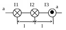 Сечение системы трех прямых параллельных бесконечных проводов с токами I1 = I2 = I и I3 = 2I изображено на рисунке. Расстояние между соседними проводами l = 5 см. С какой стороны и на каком расстоянии x от тока I1 на прямой аа напряженность магнитного поля равна нулю?