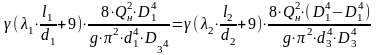 Значения λ1 и λ2 предварительно определяются по выражениям (8) – (10) при условии, что расход на участке длиной l1 равен: