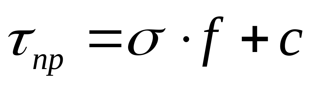 Уравнение выражает закон Кулона для глинистых грунтов, который формулируется следующим образом: предельное сопротивление связных грунтов сдвигу при завершенной их консолидации есть функция первой степени от нормального напряжения