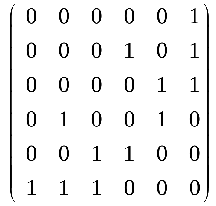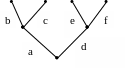 Решение: обозначим ребра буквами латинского алфавита. Тогда обход дерева задаётся следующей последовательностью: a, b, b, c, c, a, d, e, e, f, f, d. По этой последовательности (двигаясь слева направо) построим код дерева. Если буква встречается в последовательности первый раз, то вместо неё пишем 0. Буквам, которые повторяются в последовательности, соответствует 1. Тогда код дерева равен 001011001011.