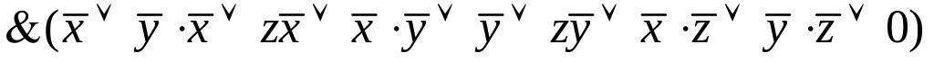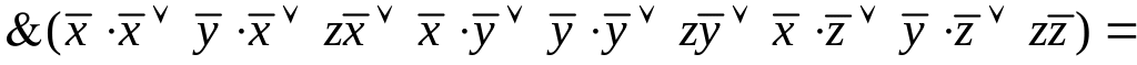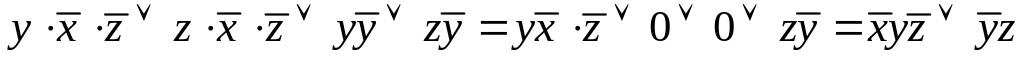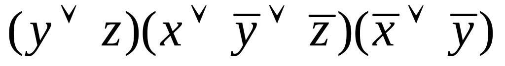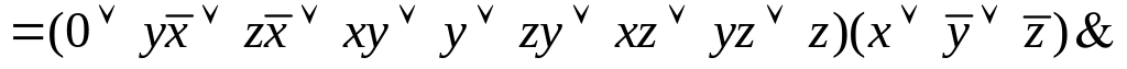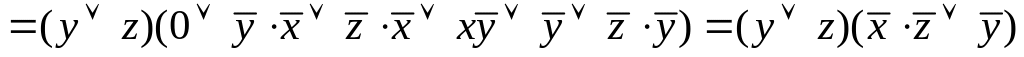 В первой скобке слагаемое y поглощает все слагаемые, содержащие y, а слагаемое z поглощает все слагаемые, содержащие z. В третьей скобке слагаемое поглощает все слагаемые, содержащие , а слагаемое поглощает все слагаемые, содержащие .