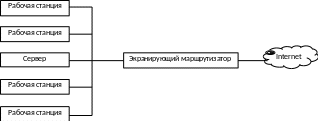Межсетевой экран, выполненный в виде экранированного узла, использует защитные возможности и пакетного фильтра, и proxy-сервера. Пакетный фильтр настроен так, чтобы пропускать только трафик proxy-сервера. Поскольку proxy-сервер и его клиенты находятся в одной подсети, клиентская рабочая станция может посылать пакеты непосредственно пакетному фильтру, но они будут отброшены. Пакетный фильтр пропускает внутрь сети лишь пакеты, адресованные proxy-серверу, а наружу передает - только отправляемые proxy-сервером.