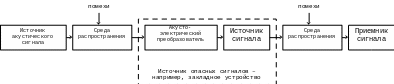 Акусто-радиоэлектронный канал утечки информации состоит из двух последовательно сопряженных каналов: акустического и радиоэлектронного каналов утечки информации. Приемником акустического канала является функциональный или случайно образованный акустоэлектрический преобразователь. Электрический сигнал с его выхода поступает на вход радиоэлектронного канала утечки информации - источника электрических или радиосигналов.