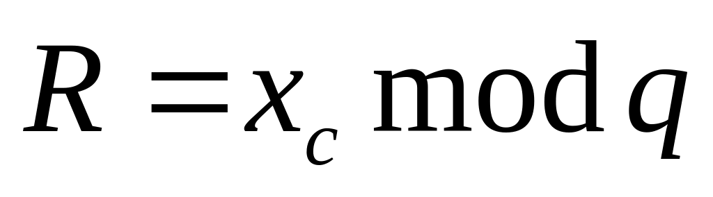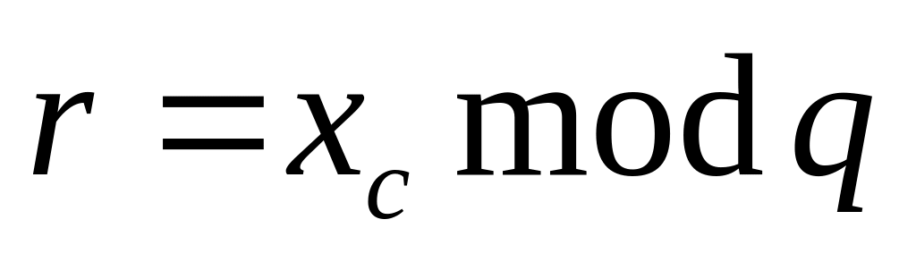 3.Вычисление e=z mod q, и если e=0, положить e=1. Где z — целое число соответствующее ;