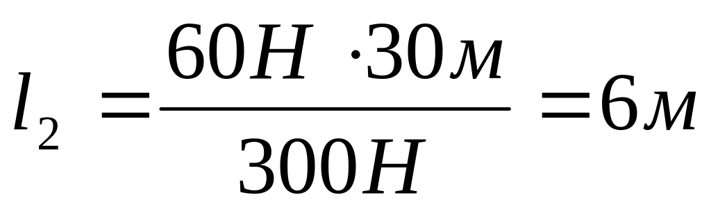 2. При равновесии рычага на его большее плечо действует сила 60 Н, на меньшее плечо – 300 Н. Длина большего плеча 30 м. Определите длину меньшего плеча.