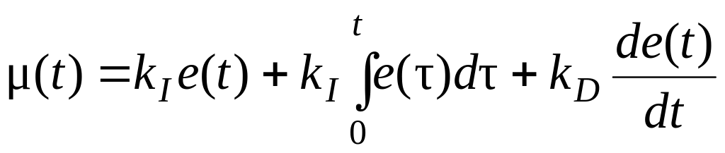 Пропорционально-интегрально-дифференциальный закон (ПИД-закон). В дополнение к ПИ-закону формирует управляющее воздействие также и с учетом скорости изменения ошибки: