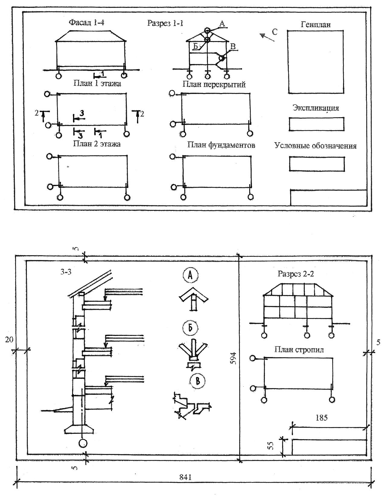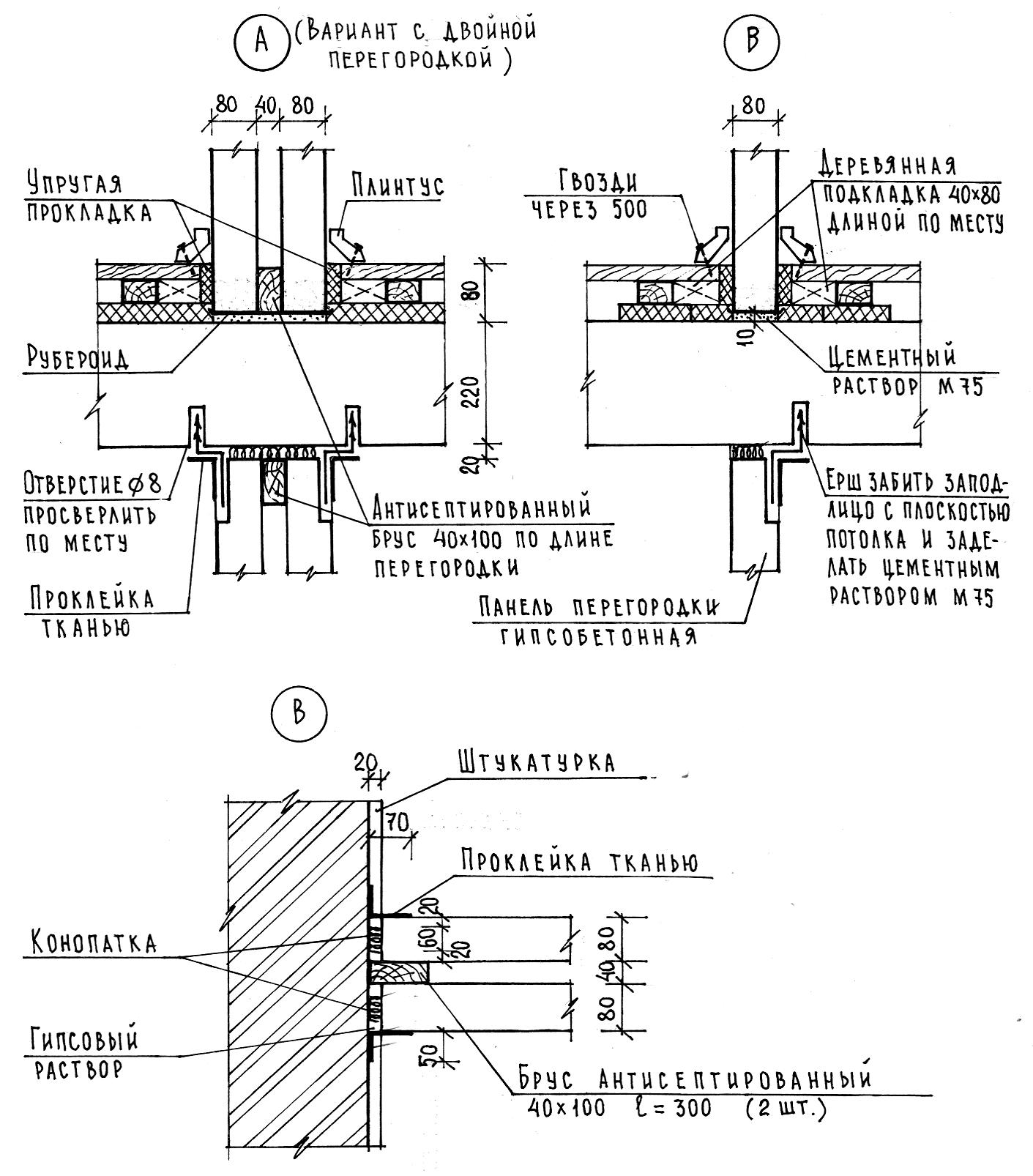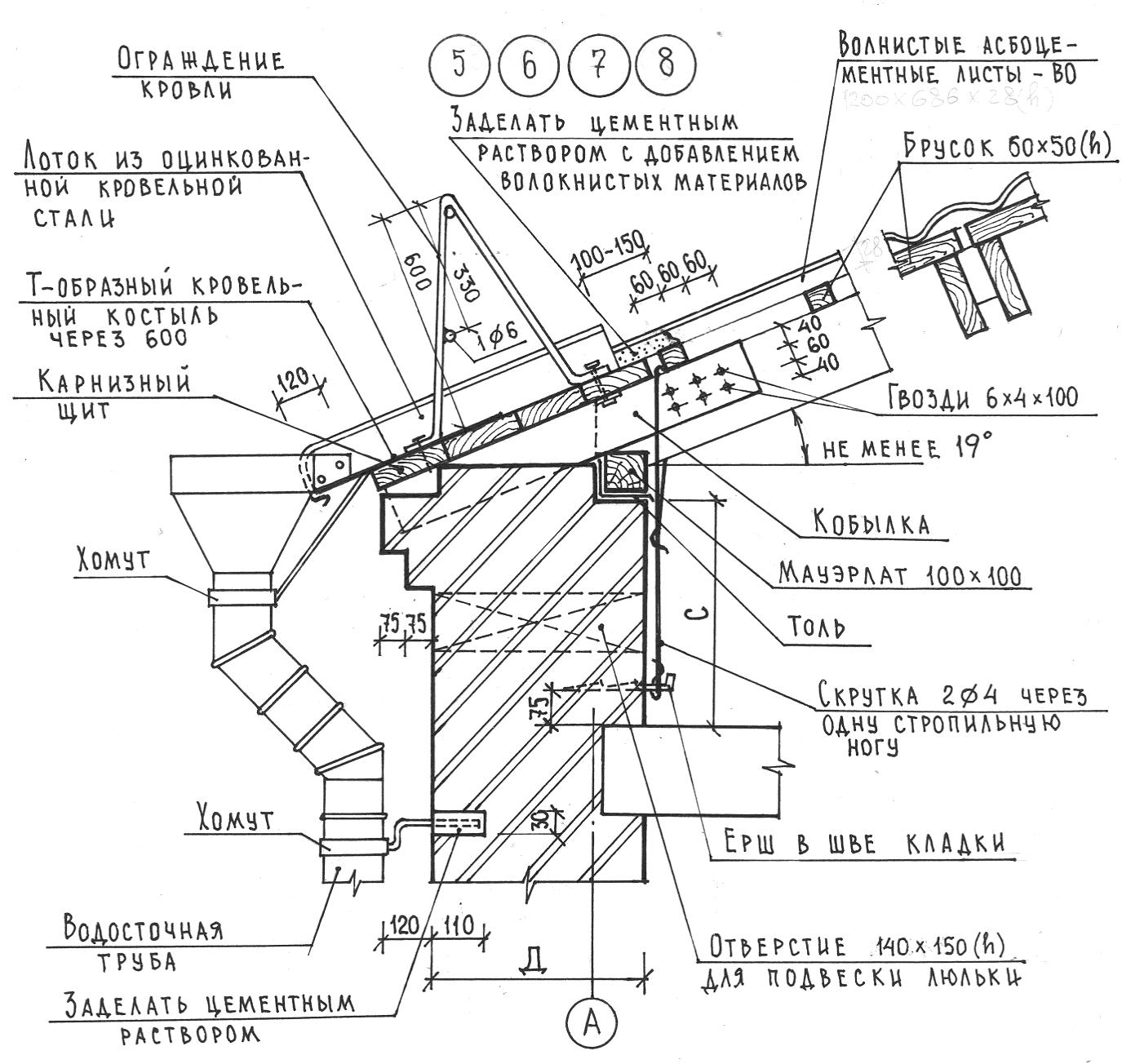 Рис.20. Конструктивный разрез по кирпичной стене со сборными фундаментами