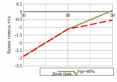 Рекомендуемая доля трав в севообороте для выхода на неотрицательный баланс составляет 49%.(рис.5)