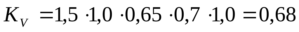 Кnv=1,0 [10, табл. 5, с.236], Кuv=0,65 [10, табл. 6, с.263], Кφv=0,7 и Кφ1v=1,0 [10, табл. 18, с.271]. Тогда Кv равен:
