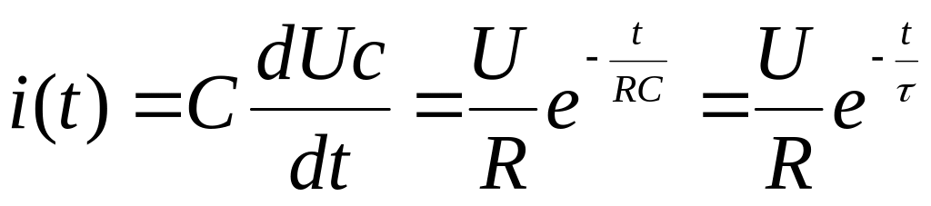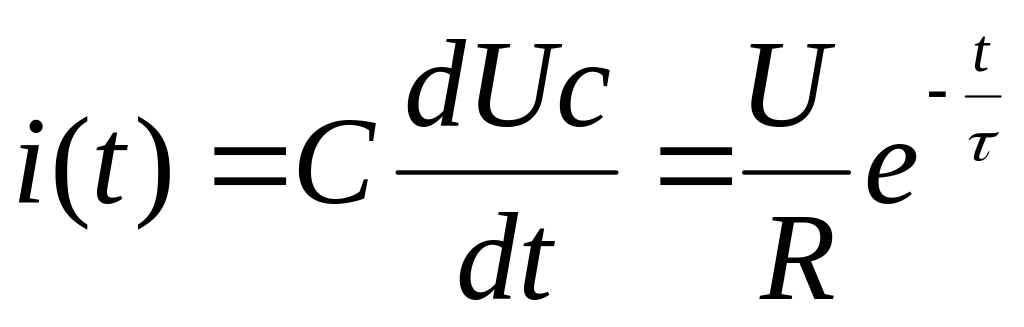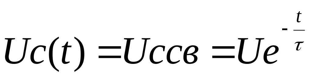 Множитель RC = τ в выражениях (3) и (4) называется постоянной времени цепи. Постоянная времени τ имеет размерность времени и характеризует скорость протекания переходного процесса. При t = τ свободные составляющие уменьшаются по абсолютной величине в e = 2.7 I раз. Графически τ равна величине, подкасательной к экспоненте тока i(t) или напряжения U(t). Переходной процесс можно считать практически завершенным через время t = 3.5 τ , так как к этому времени свободная составляющая напряжения снижается до 3% от своего первоначального значения.