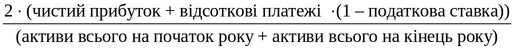 В цій формулі не виключаються відсоткові платежі, тому що при оцінці ефективності використання власного капіталу враховується в тому числі ефективність тогою, наскільки менеджмент підприємства може ефективно для його власників залучати та використовувати запозичені грошові кошти.