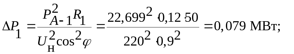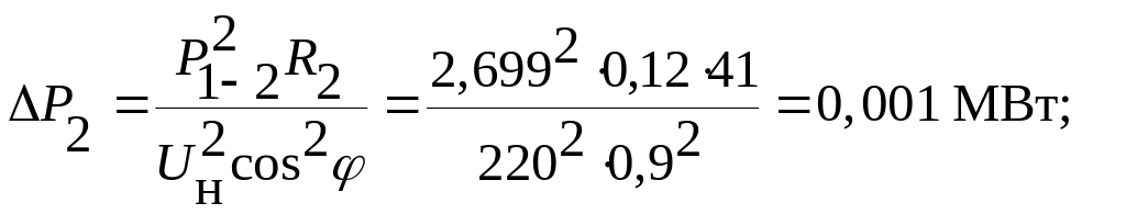 Переменные потери для двухтрансформаторной подстанции определяют по формулам: