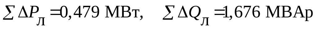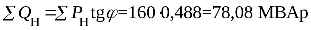 где – зарядная мощность линий; 0,95 – коэффициент одновременности для реактивных нагрузок