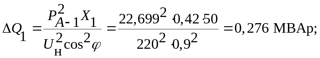 Убеждаемся, что в проектируемой сети по первому варианту вырабатывается реактивной мощности больше, чем потребляется, поэтому нет необходимости в установке компенсирующих устройств.