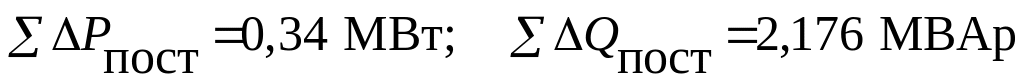 Постоянные потери мощности для двухтрансформаторной подстанции определяются по формулам: