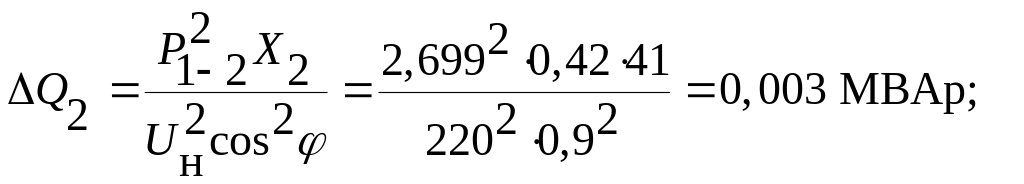 Убеждаемся, что в проектируемой сети по второму варианту вырабатывается реактивной мощности больше, чем потребляется, поэтому нет необходимости в установке компенсирующих устройств.