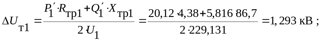 S’1 = 20+ j9,686+ 0,082 + j1,852+ 0,038 + j0,224– – j11,892= 20,12+ j 5,816 (МВА);