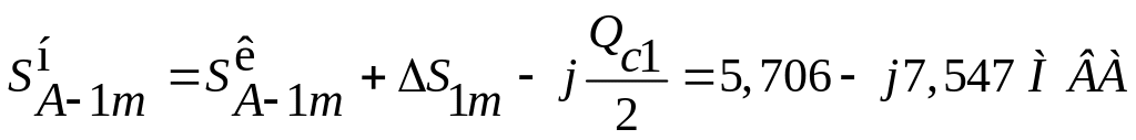 S’1m = 5 + j2,422-0,005+ j0,017+ 0,019 + j0,112– – j5,946= 5,014- j3,395МВА;