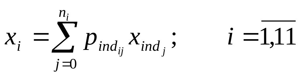 Для каждой строки корреляционной матрицы Rij ; i, j = 1,11 составляется индексный массив параметров, тесно связанных с i-м фактором (связи, выделенные жирным курсивом), и рассчитываются коэффициенты линейной множественной регрессии