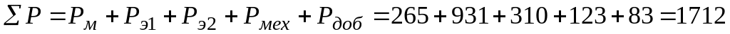 Подводимая механическая мощность равна полезной мощности плюс сумма потерь в генераторе