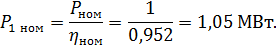 Определим номинальную электрическую мощность, отдаваемую генератором в сеть, как