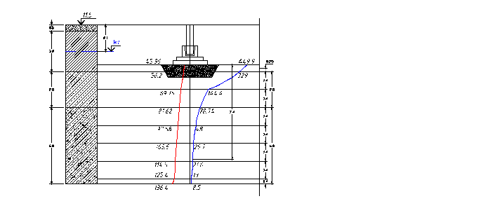 Рисунок 8. Определение осадок фундамента послойным суммированием.