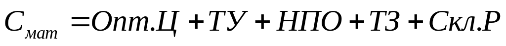 где Опт.Ц-оптовая цена на материалы, изделия и конструкции; ТУ- стоимость тары и упаковки; НПО- наценка посреднической организации; ТЗ- транспортные затраты; Скл.Р- заготовительно-складские расходы.