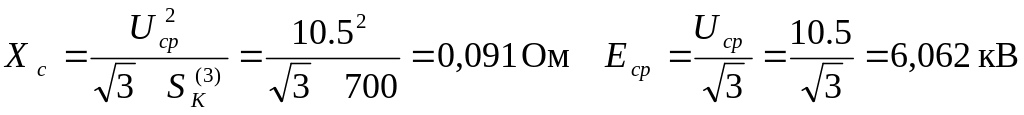 Параметры энергосистемы также приведены к стороне 10,5 кВ: