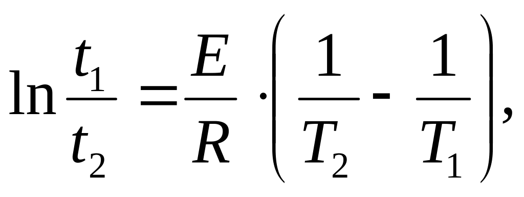 де t1 і t2 – час досягнення однакового КЧ при різних температурах T1 і T2 (T2 >T1), с;