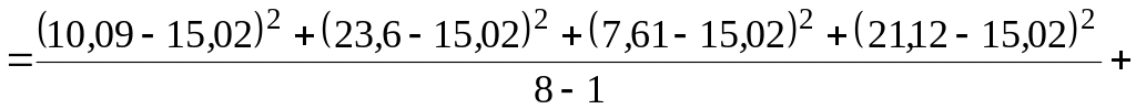 Проверку соответствия (адекватности) расчета времени остывания заготовки по полученной линейной математической модели экспериментальным данным выполним с помощью критерия Фишера. Для этого рассчитаем дисперсии экспериментально полученного времени остывания заготовки до t = 15 0C и дисперсию времени остывания, рассчитанного по полученной линейной математической модели.