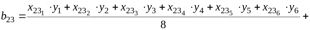 Коэффициенты парных взаимодействий факторов рассчитываем по формуле