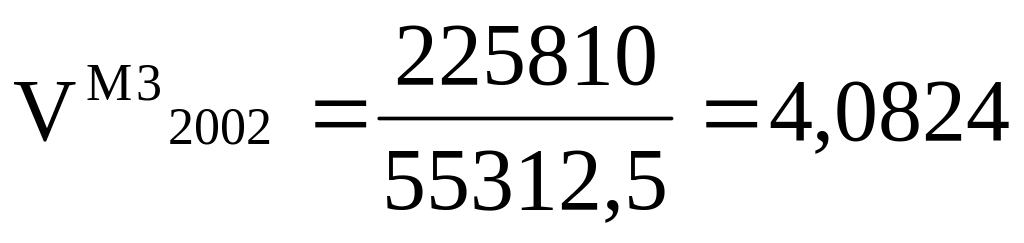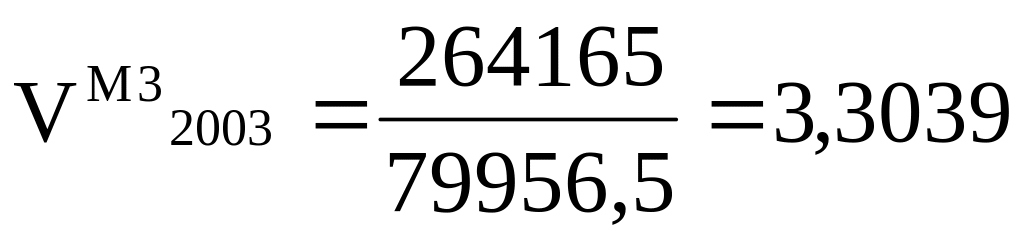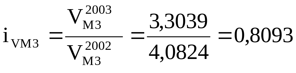 Це означає, що в середньому за 2002 рік грошова маса здійснила 4,0824 оборотів, а у 2003 року - 3,3039 оборотів. Швидкість обігу грошової маси зменшилась на 19,07% (0,8093-1=-0,1907) або на 0,7785 оборотів (4,0824-3,3039=0,7785).